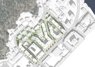 Kvartal 71 was awarded 1st prize in an invited competition held by SBB. The site is located on Tordenskjolds gate, in Kristiansand. Taking its lead from a new urban square, the masterplan seeks to redefine and build upon the scale and character of its surroundings.