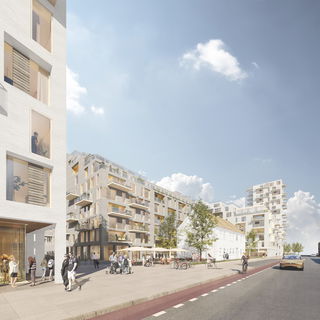 The project comprises approximately 600 apartments of varying size and character, offering diversity to the residents. Commercial spaces are placed at ground-floor level, bringing further diversity to the programme while also providing active and lively street fronts.