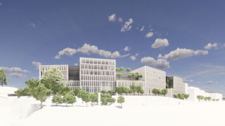 The building is articulated as a series of interconnecting volumes of differing height, introducing a formal play in both plan and elevation. To the south, facing Teleplanområdet, the volume opens up to frame and envelop a large, central forecourt serving both the development itself and the neighbourhood as a whole.